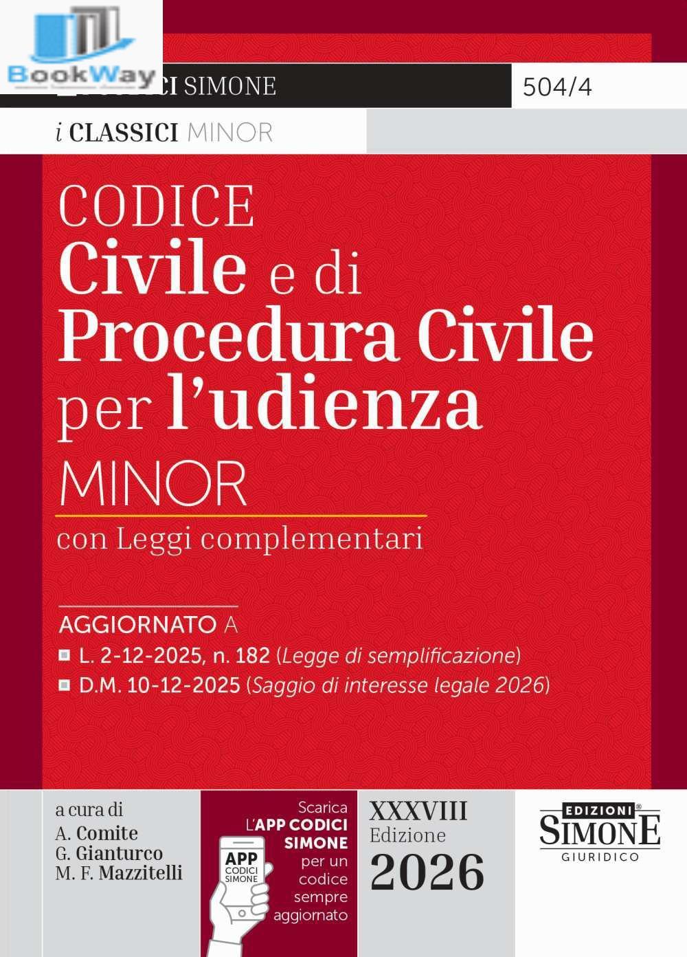 CODICE CIVILE E DI PROCEDURA CIVILE PER L'UDIENZA MINOR