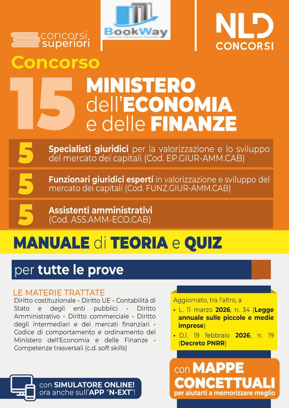 CONCORSO 15 POSTI MINISTERO DELL'ECONOMIA E DELLE FINANZE. MANUALE DI TEORIA E QUIZ